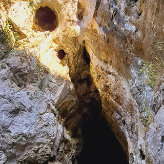 Reynards Cave lies half-hidden on a slope overlooking the beautiful Peak District valley of Dovedale. It is almost two caves in one, with an enormous natural archway standing as a gateway in front of it. When one reaches the skull-like cave beyond it becomes clear that there are two caverns here, the second one known as Reynards Kitchen.